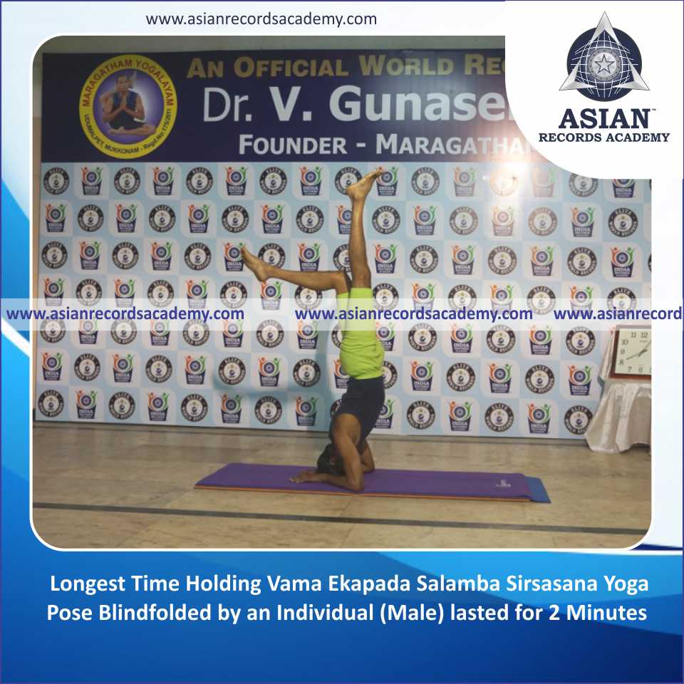 Longest Time Holding Vama Ekapada Salamba Sirsasana Yoga Pose Blindfolded by an Individual (Male)