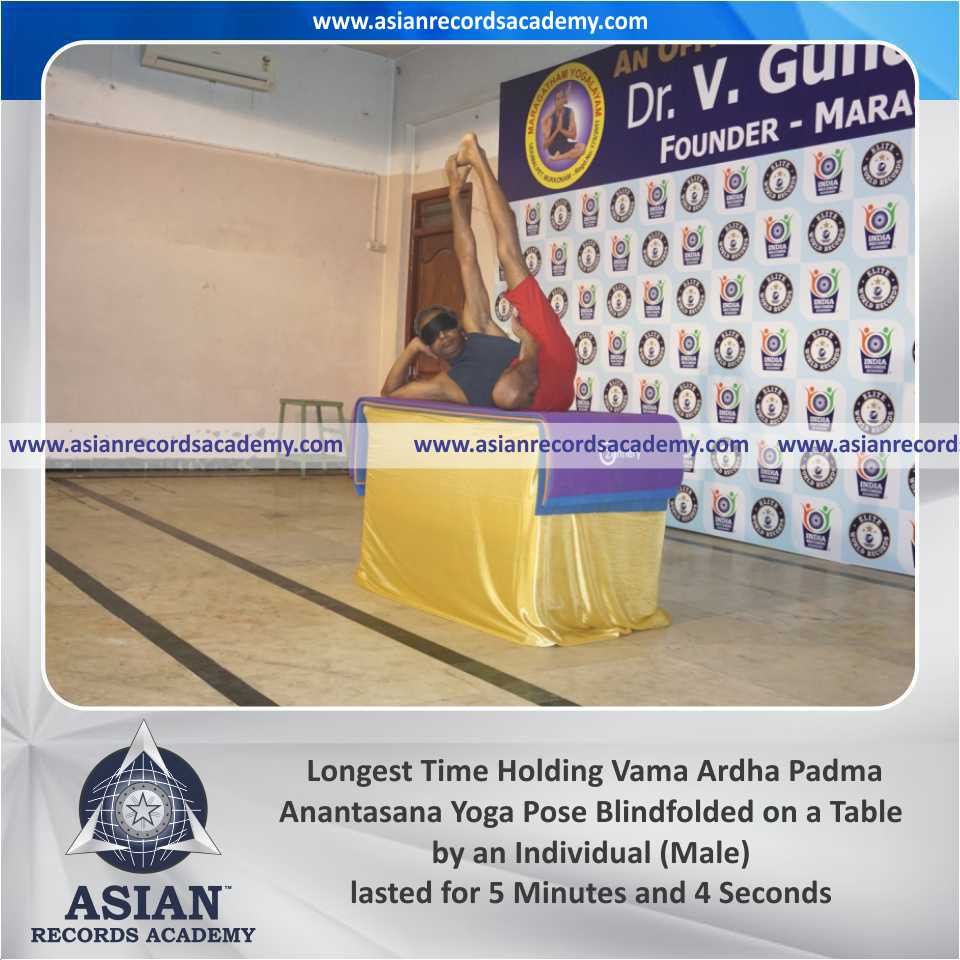 Longest Time Holding Vama Ardha Padma Anantasana Yoga Pose Blindfolded on a Table by an Individual (Male)