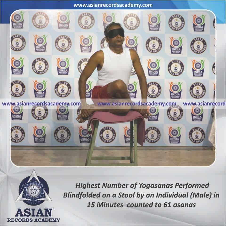 Highest Number of Yogasanas Performed Blindfolded on a Stool by an Individual (Male) in 15 Minutes