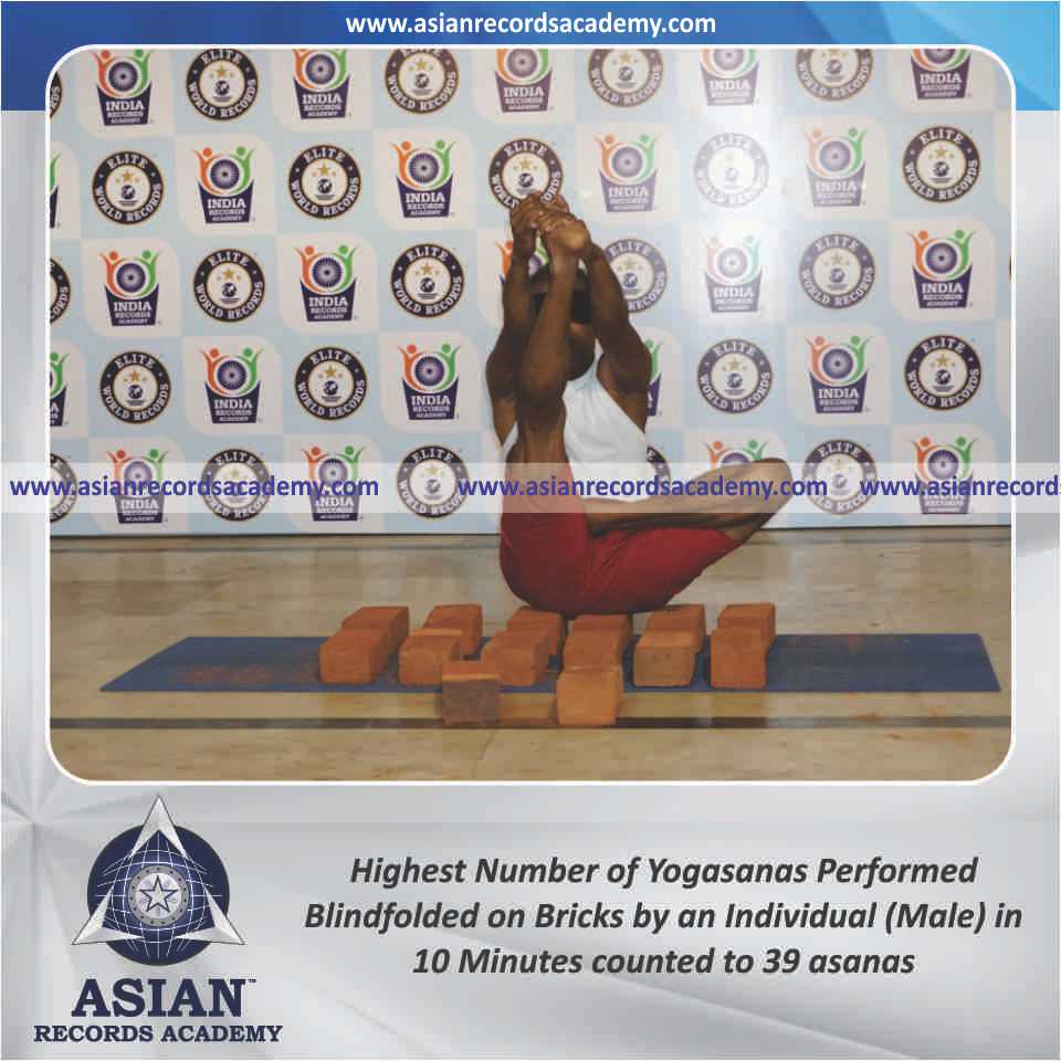 Highest Number of Yogasanas Performed Blindfolded on Bricks by an Individual (Male) in 10 Minutes