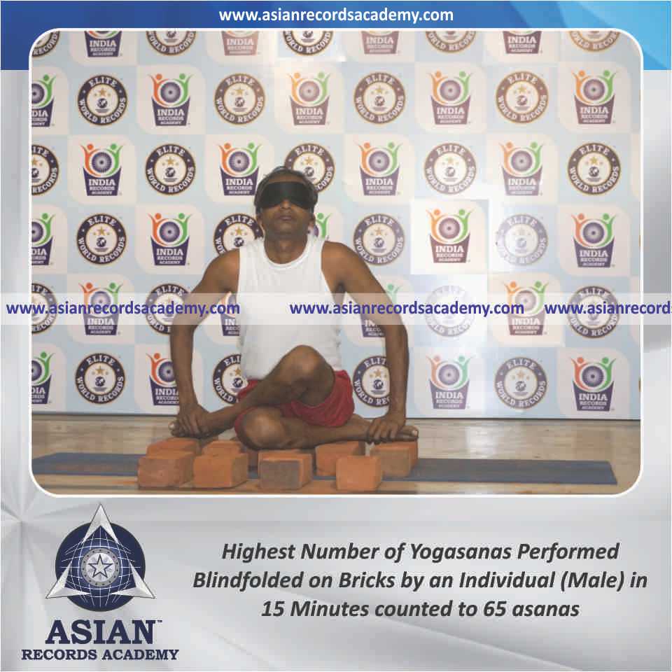 Highest Number of Yogasanas Performed Blindfolded on Bricks by an Individual (Male) in 15 Minutes