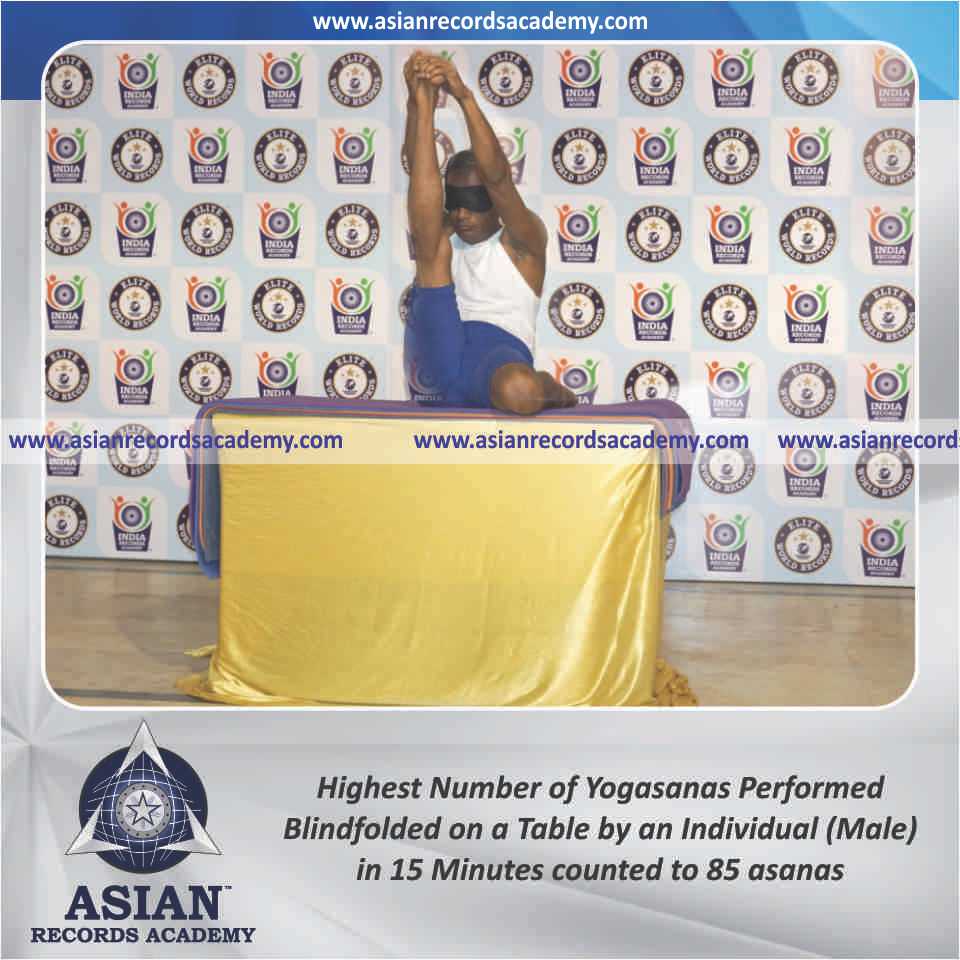 Highest Number of Yogasanas Performed Blindfolded on a Table by an Individual (Male) in 15 Minutes