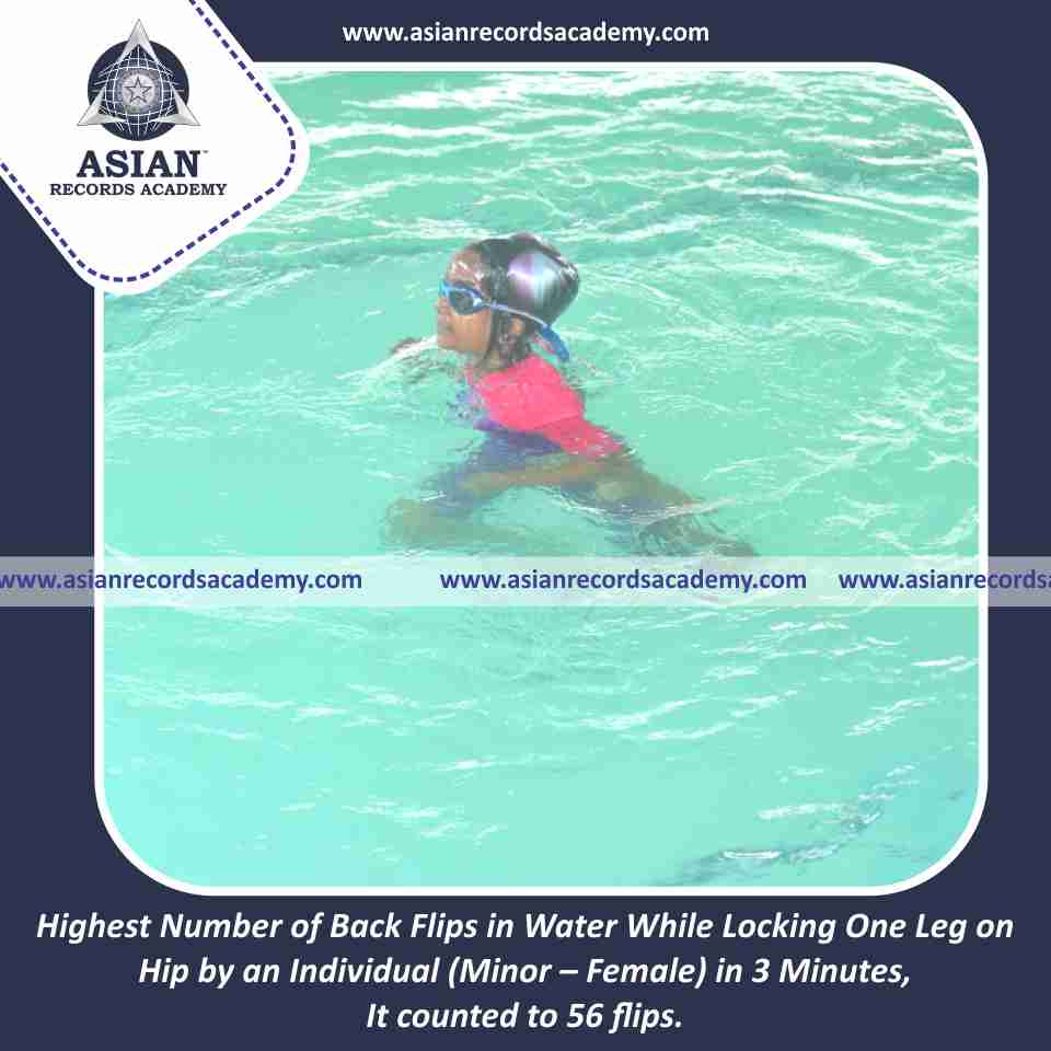 Highest Number of Back Flips in Water While Locking One Leg on Hip by an Individual (Minor – Female) in 3 Minutes