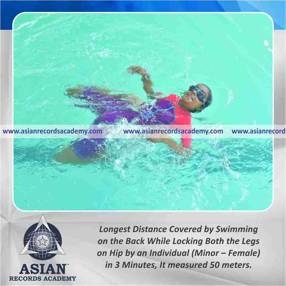Longest Distance Covered by Swimming on the Back While Locking Both the Legs on Hip by an Individual (Minor – Female) in 3 Minutes