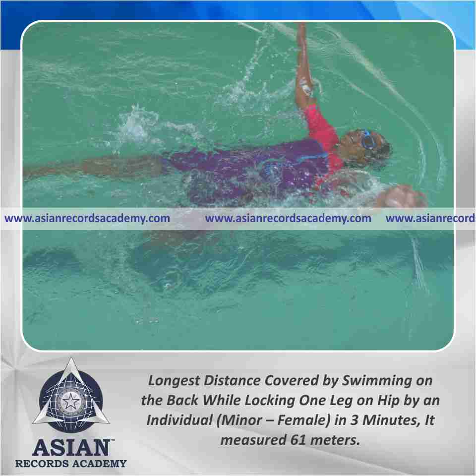 Longest Distance Covered by Swimming on the Back While Locking One Leg on Hip by an Individual (Minor – Female) in 3 Minutes