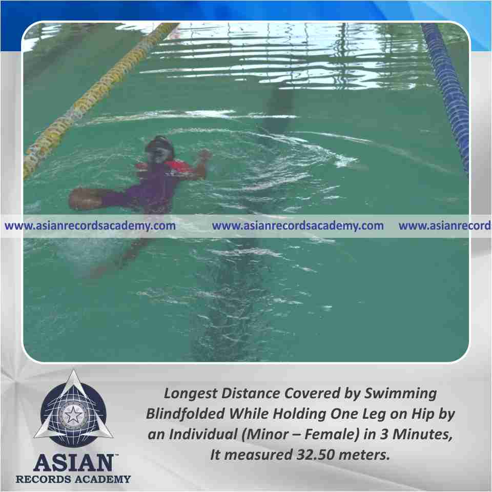 Longest Distance Covered by Swimming Blindfolded While Holding One Leg on Hip by an Individual (Minor – Female) in 3 Minutes