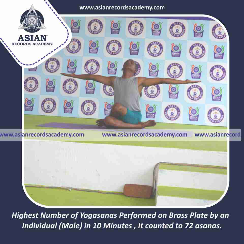 Highest Number of Yogasanas Performed on a Brass Plate by an Individual (Male) in 10 Minutes