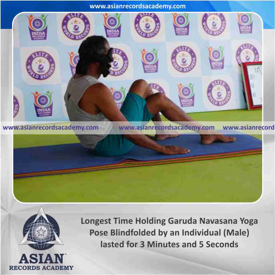 Longest Time Holding Garuda Navasana Yoga Pose Blindfolded by an Individual (Male)