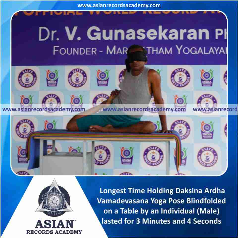 Longest Time Holding Daksina Ardha Vamadevasana Yoga Pose Blindfolded on a Table by an Individual (Male)