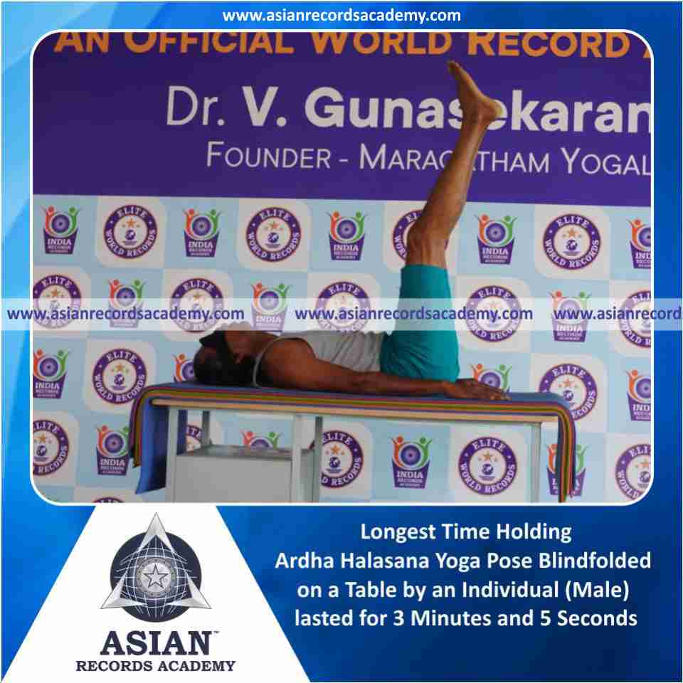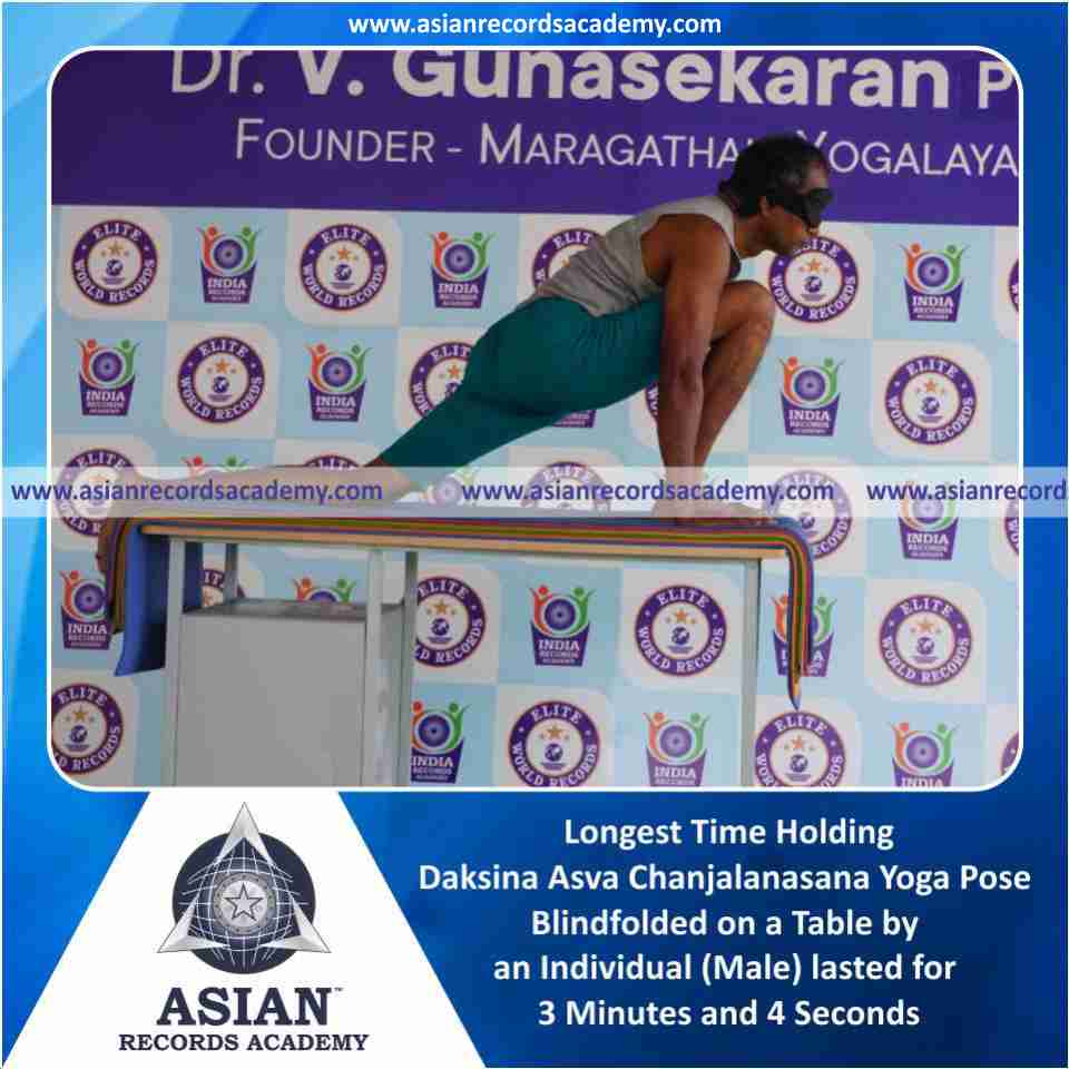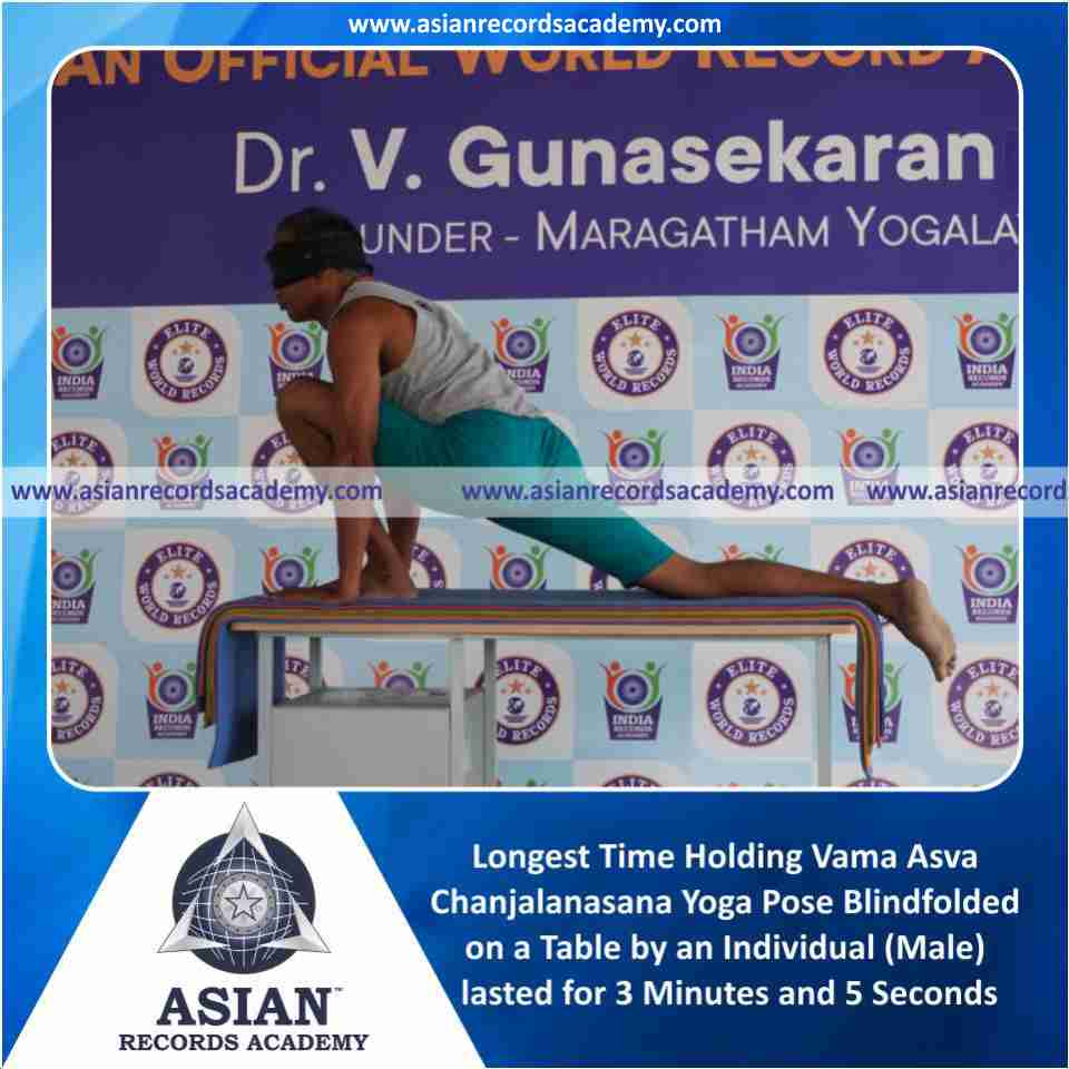 Longest Time Holding Vama Asva Chanjalanasana Yoga Pose Blindfolded on a Table by an Individual (Male)