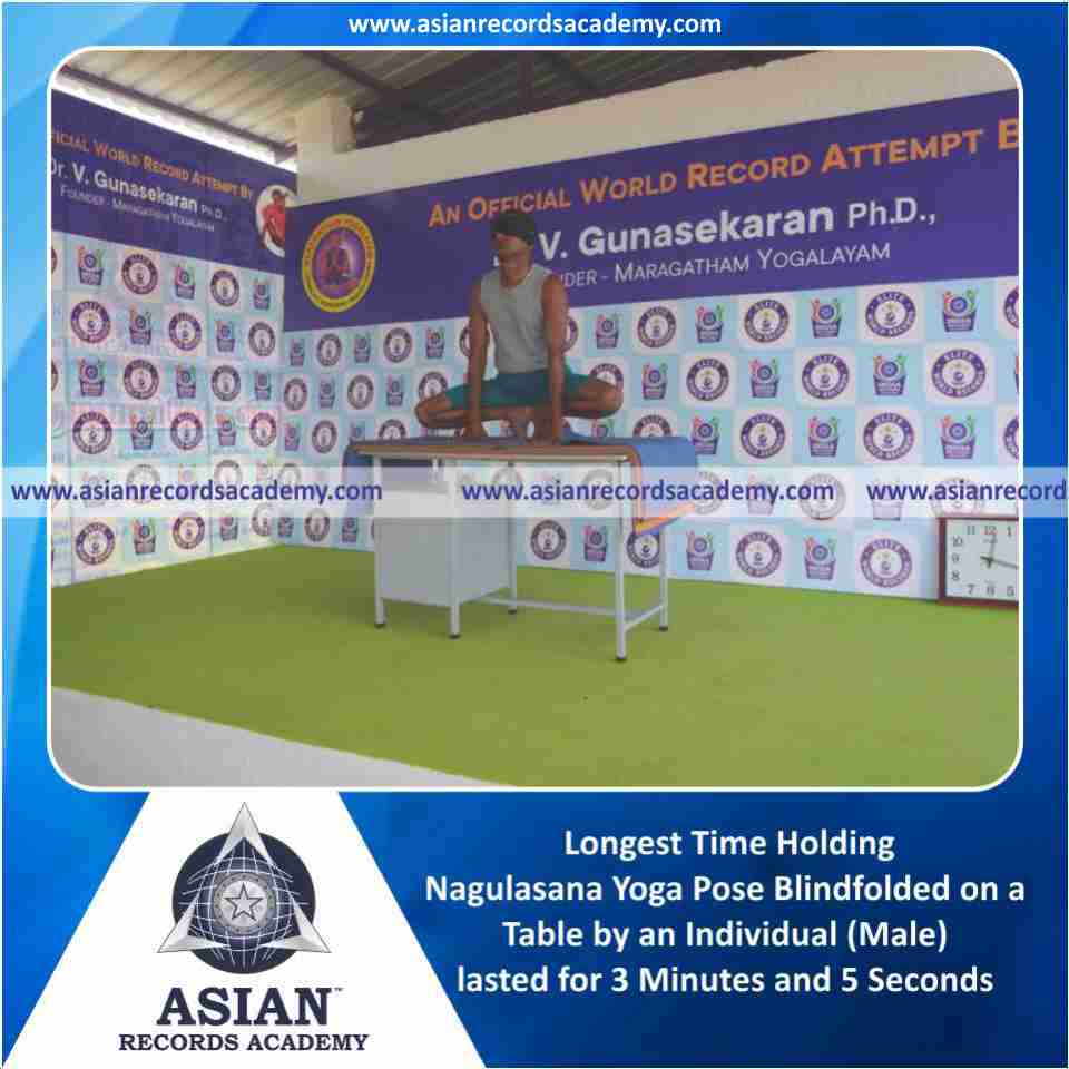Longest Time Holding Nagulasana Yoga Pose Blindfolded on a Table by an Individual (Male)