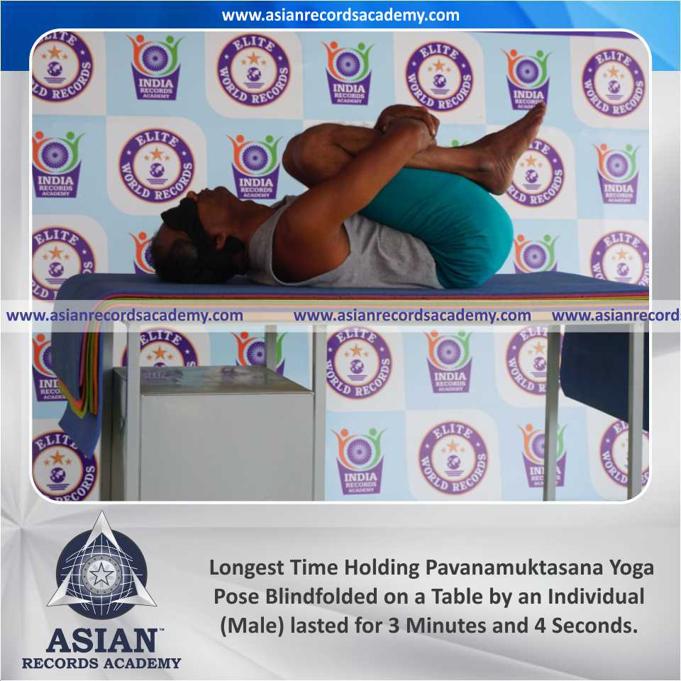 Longest Time Holding Pavanamuktasana Yoga Pose Blindfolded on a Table by an Individual (Male)