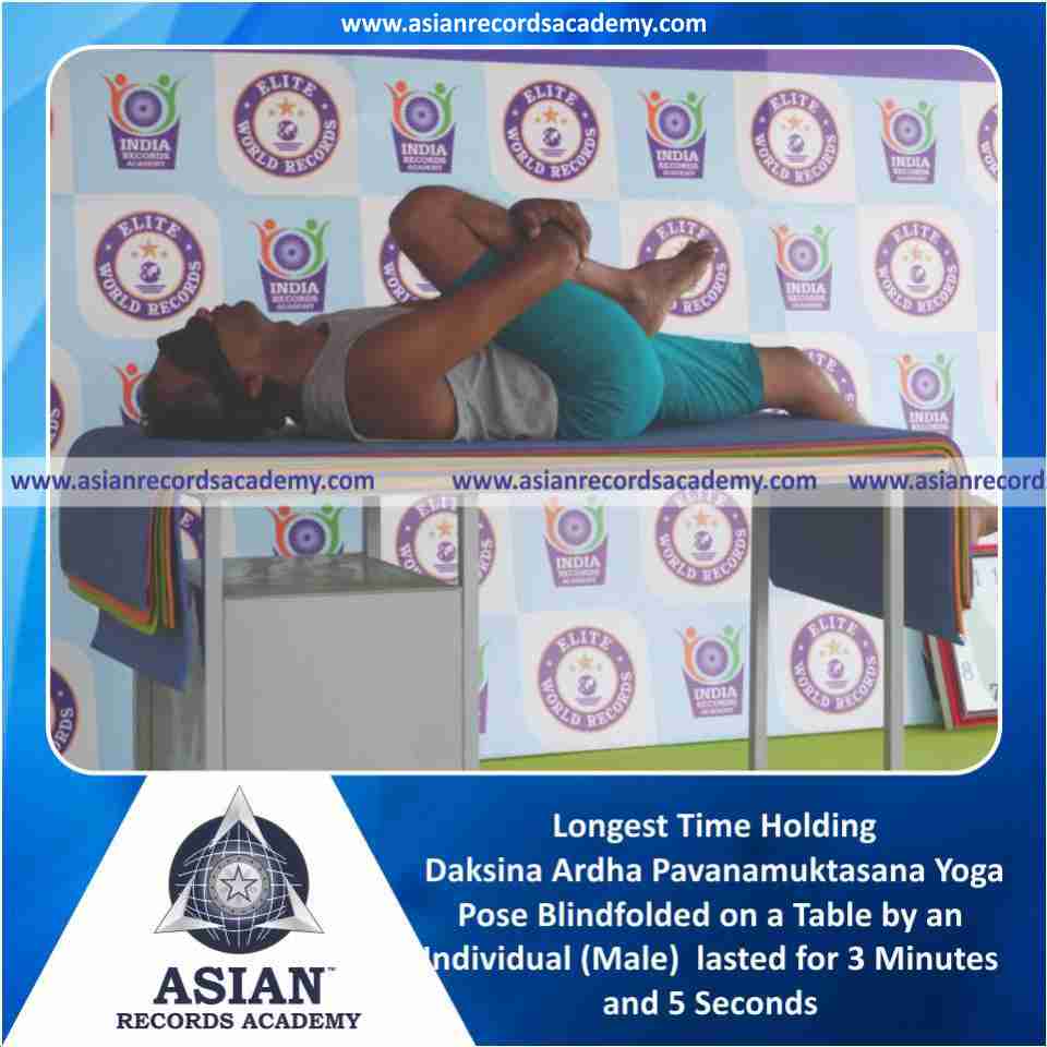 Longest Time Holding Daksina Ardha Pavanamuktasana Yoga Pose Blindfolded on a Table by an Individual (Male)