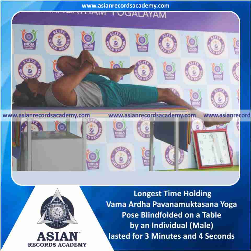 Longest Time Holding Vama Ardha Pavanamuktasana Yoga Pose Blindfolded on a Table by an Individual (Male)