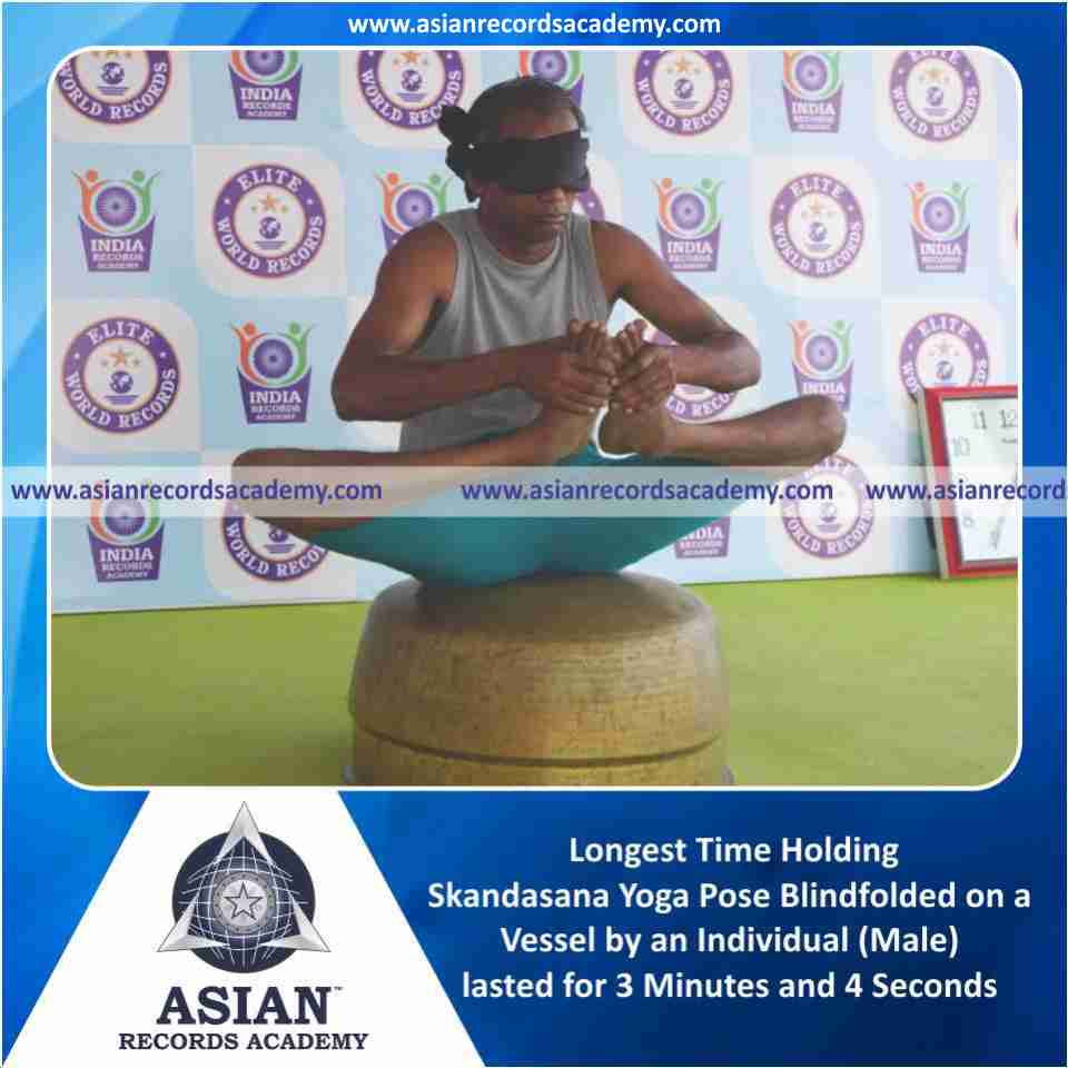 Longest Time Holding Skandasana Yoga Pose Blindfolded on a Vessel by an Individual (Male)