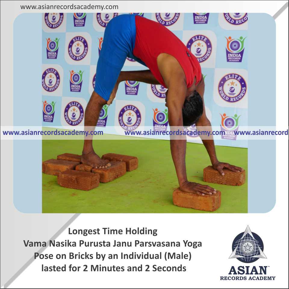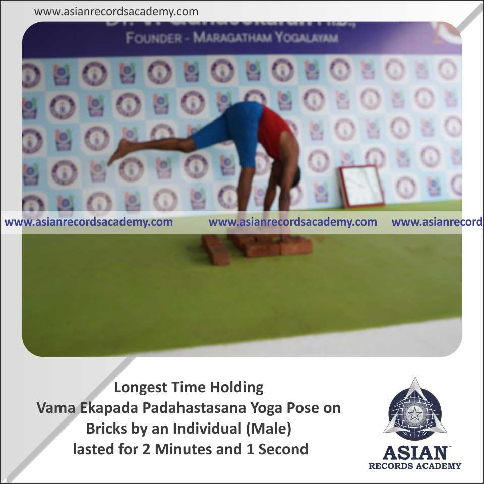 Longest Time Holding Vama Ekapada Padahastasana Yoga Pose on Bricks by an Individual (Male)