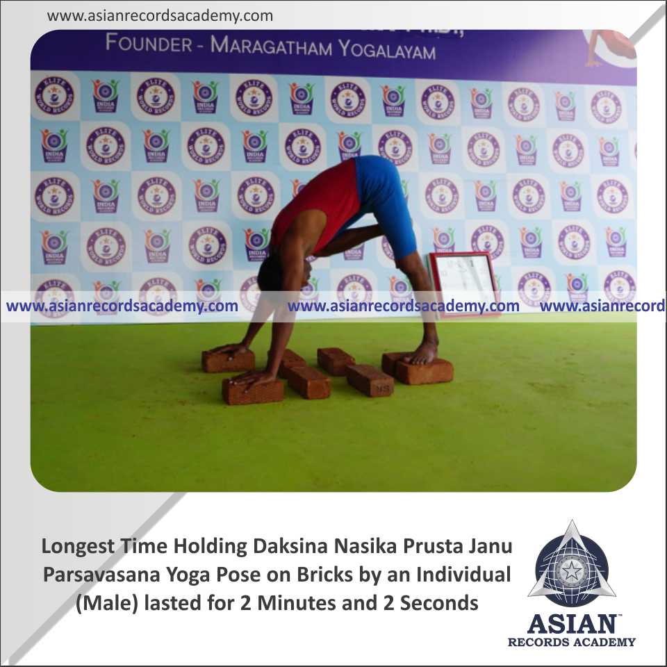Longest Time Holding Daksina Nasika Prusta Janu Parsavasana Yoga Pose on Bricks by an Individual (Male)