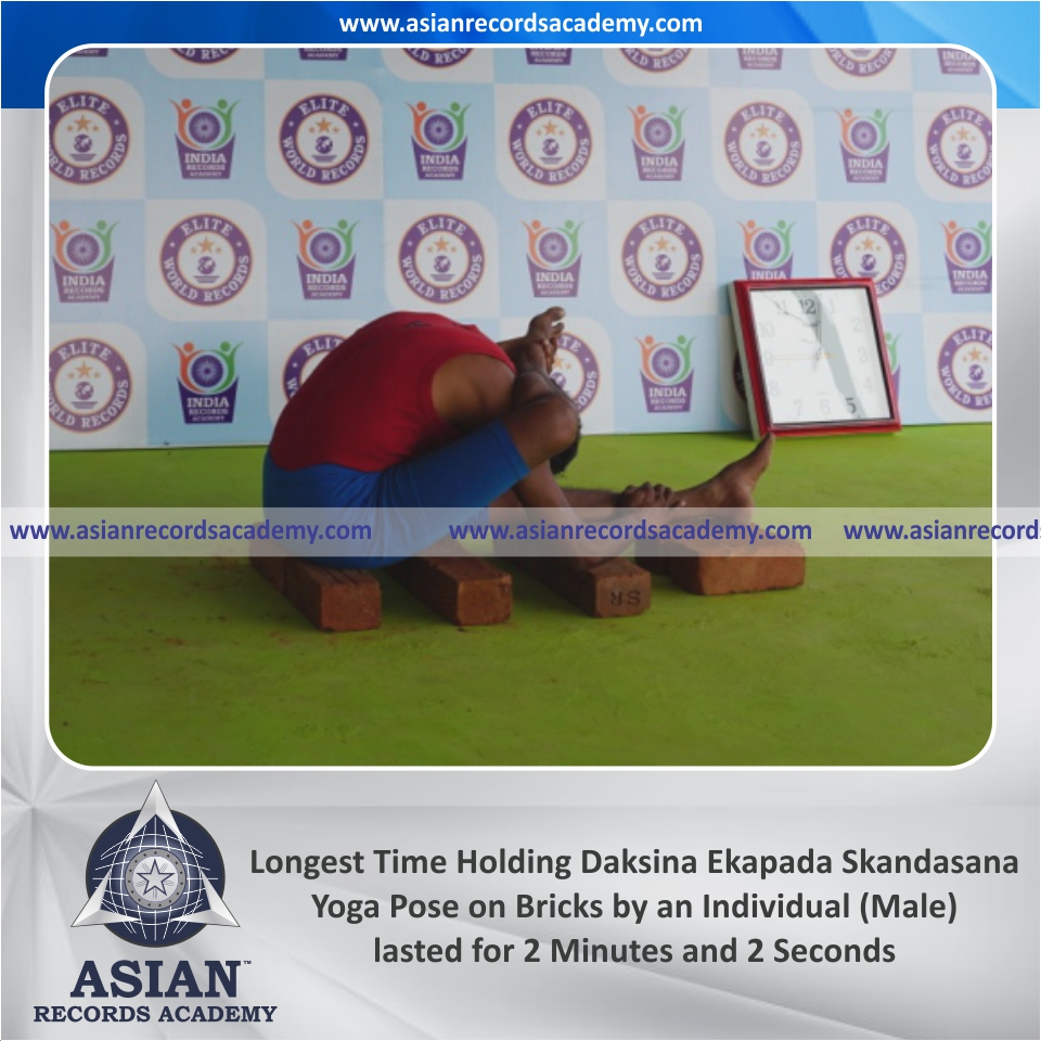 Longest Time Holding Daksina Ekapada Skandasana Yoga Pose on Bricks by an Individual (Male)