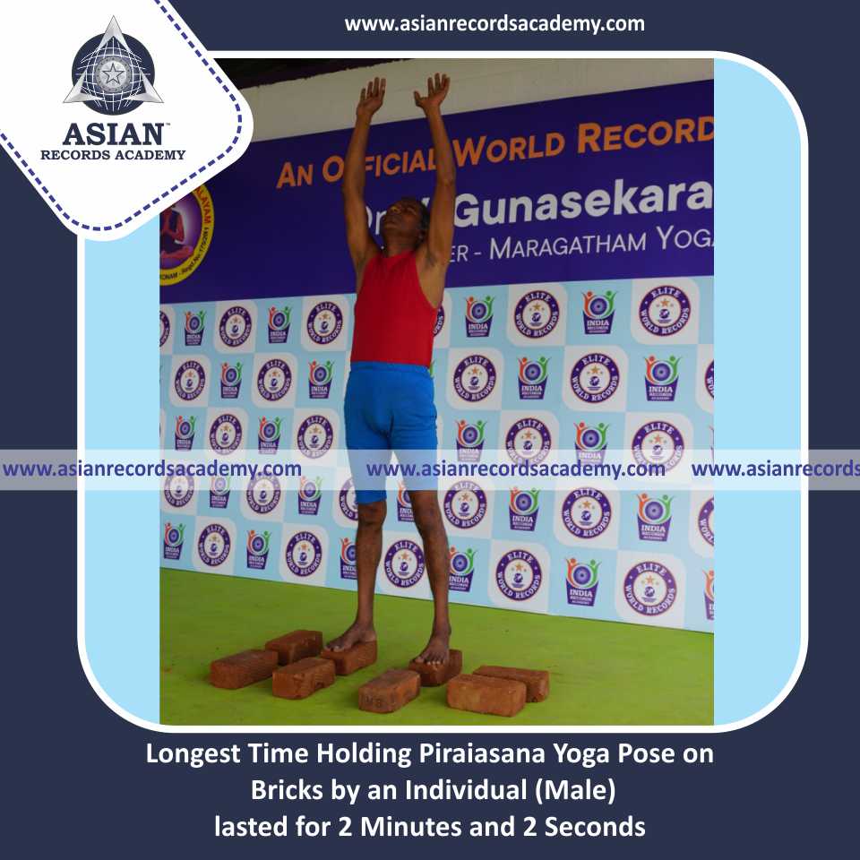 Longest Time Holding Piraiasana Yoga Pose on Bricks by an Individual (Male)
