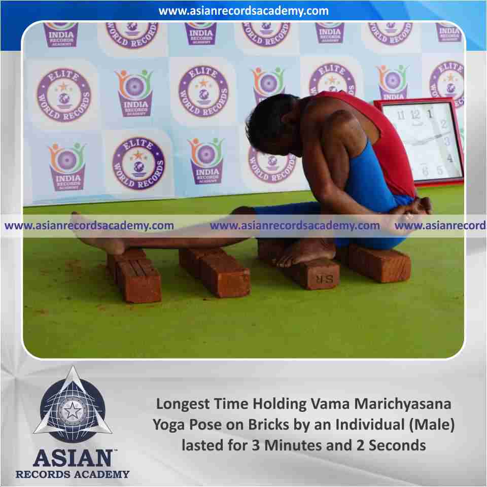 Longest Time Holding Vama Marichyasana Yoga Pose on Bricks by an Individual (Male)
