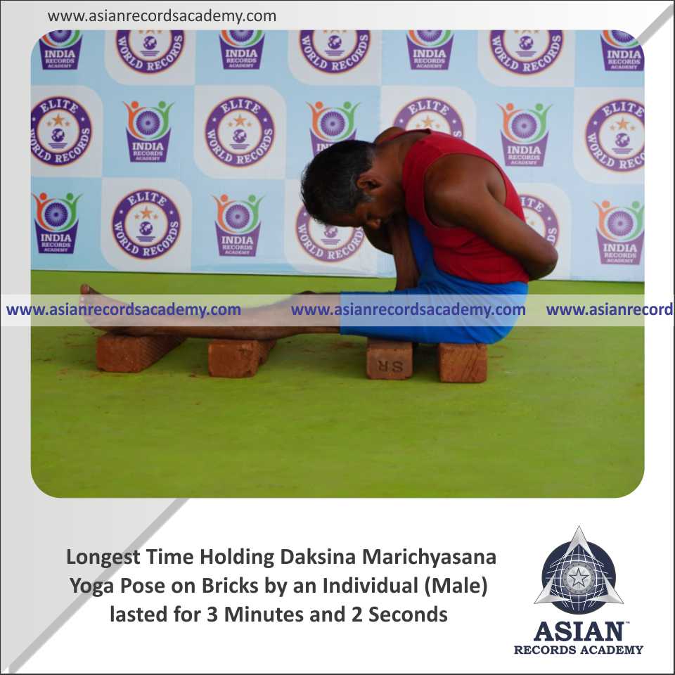 Longest Time Holding Daksina Marichyasana Yoga Pose on Bricks by an Individual (Male)