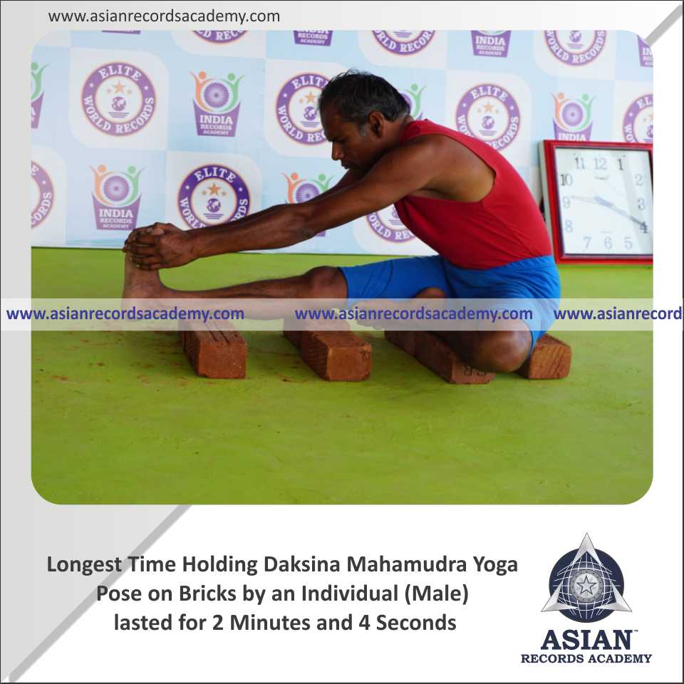 Longest Time Holding Daksina Mahamudra Yoga Pose on Bricks by an Individual (Male)