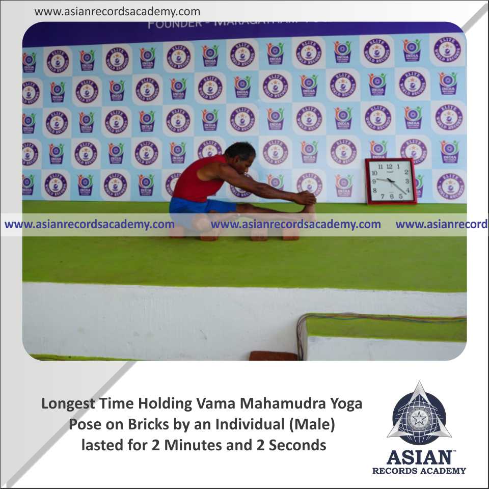 Longest Time Holding Vama Mahamudra Yoga Pose on Bricks by an Individual (Male)