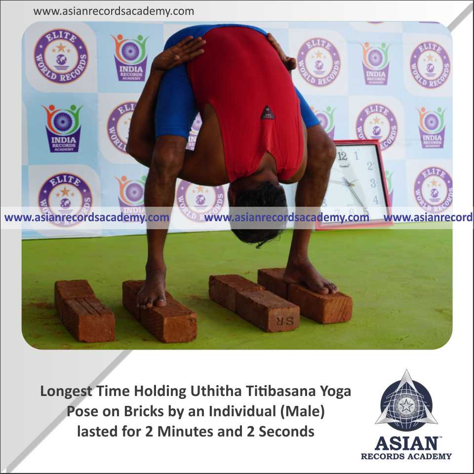 Longest Time Holding Uthitha Titibasana Yoga Pose on Bricks by an Individual (Male)