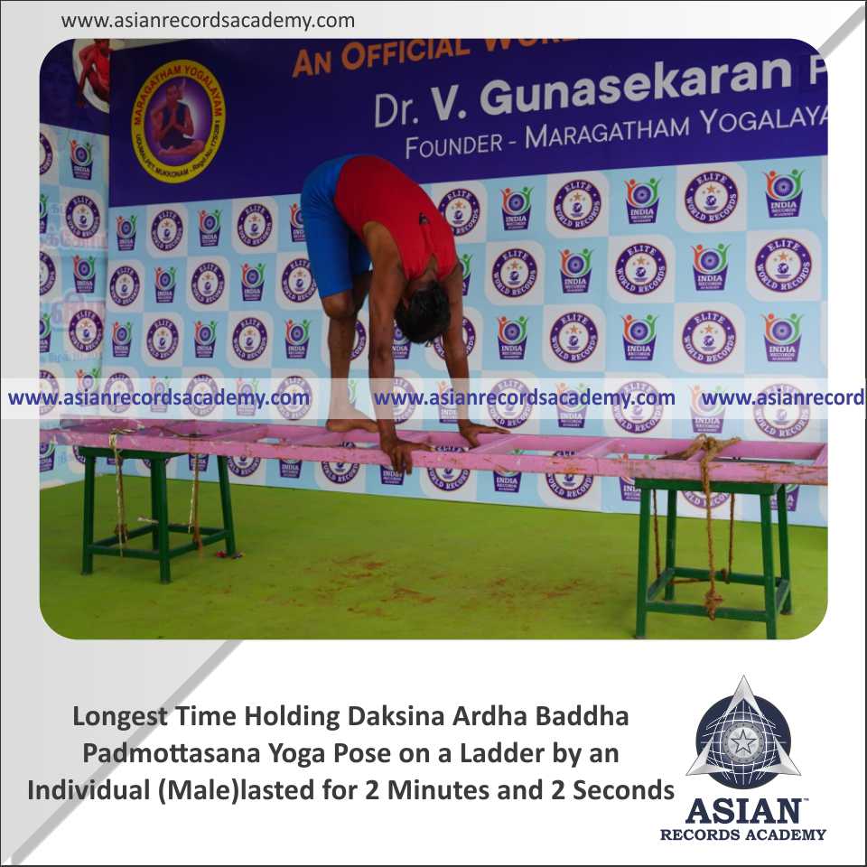 Longest Time Holding Daksina Ardha Baddha Padmottasana Yoga Pose on a Ladder by an Individual (Male)