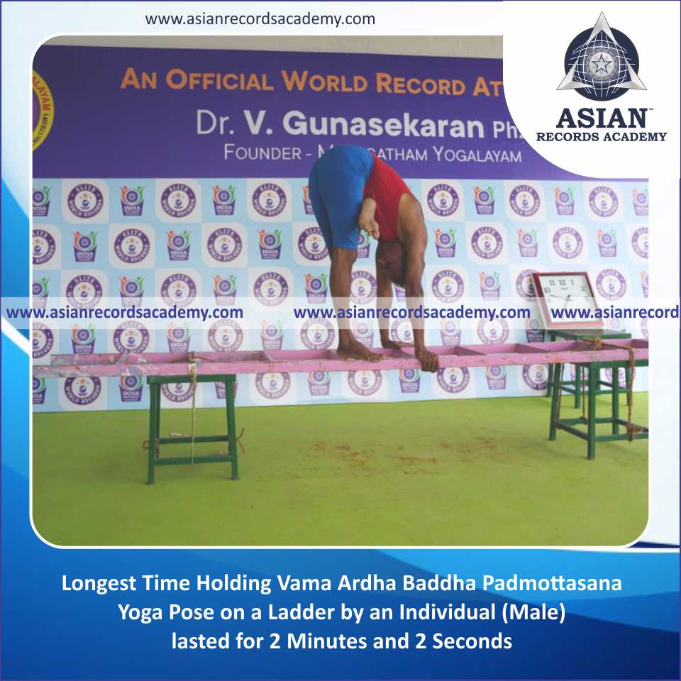 Longest Time Holding Vama Ardha Baddha Padmottasana Yoga Pose on a Ladder by an Individual (Male)