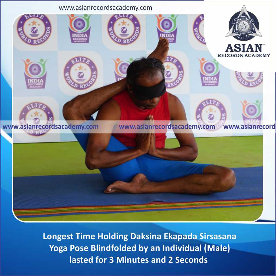 Longest Time Holding Daksina Ekapada Sirsasana Yoga Pose Blindfolded by an Individual (Male)