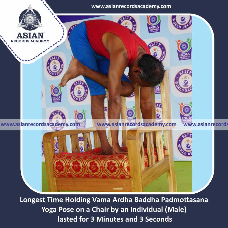Longest Time Holding Vama Ardha Baddha Padmottasana Yoga Pose on a Chair by an Individual (Male)