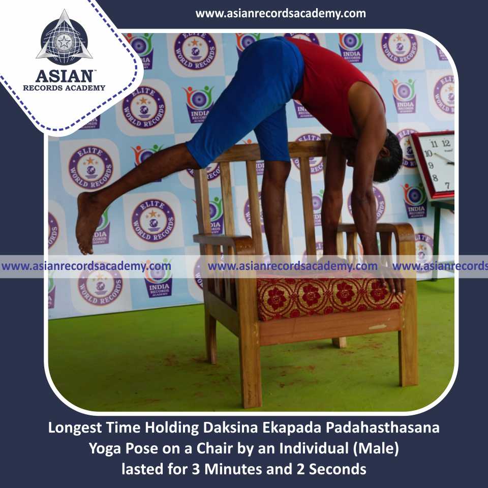 Longest Time Holding Daksina Ekapada Padahasthasana Yoga Pose on a Chair by an Individual (Male)