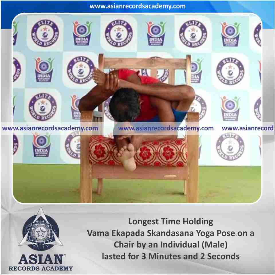 Longest Time Holding Vama Ekapada Skandasana Yoga Pose on a Chair by an Individual (Male)