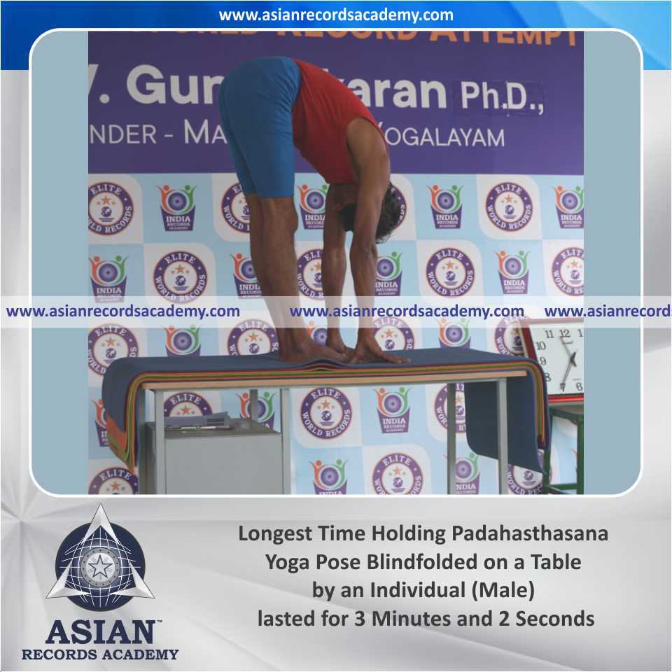 Longest Time Holding Padahasthasana Yoga Pose Blindfolded on a Table by an Individual (Male)