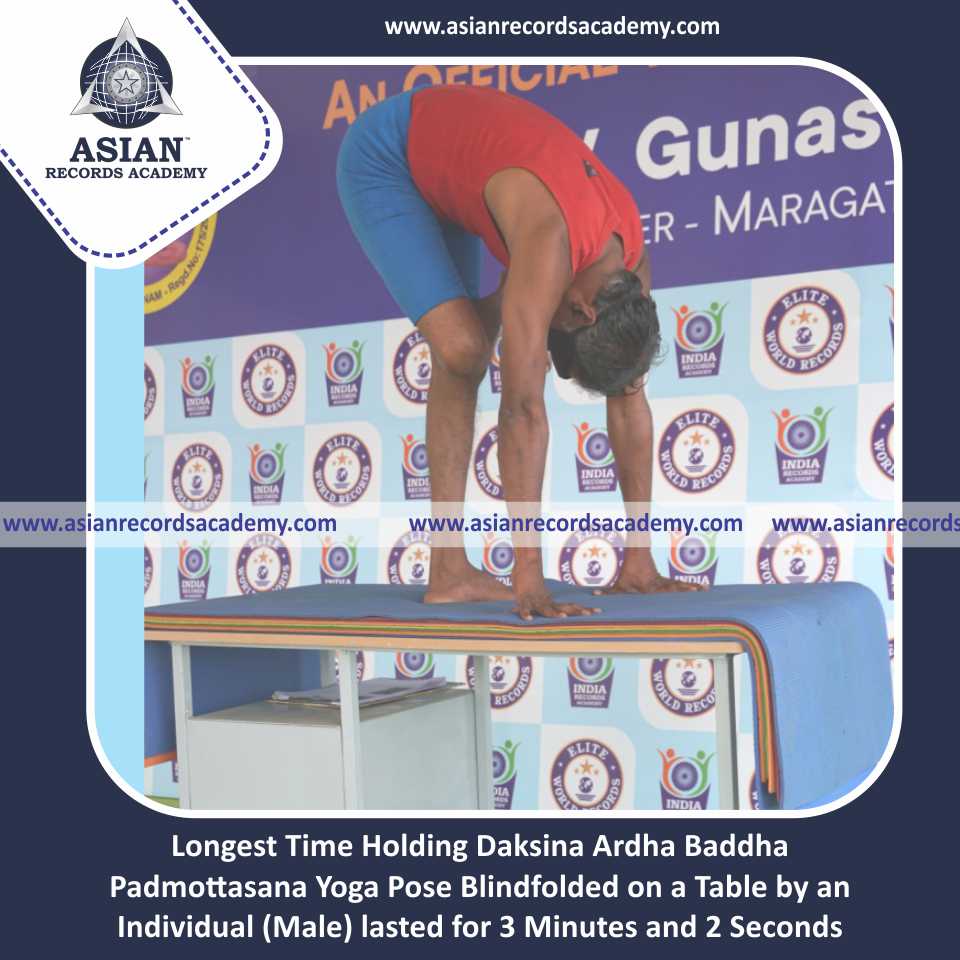 Longest Time Holding Daksina Ardha Baddha Padmottasana Yoga Pose Blindfolded on a Table by an Individual (Male)
