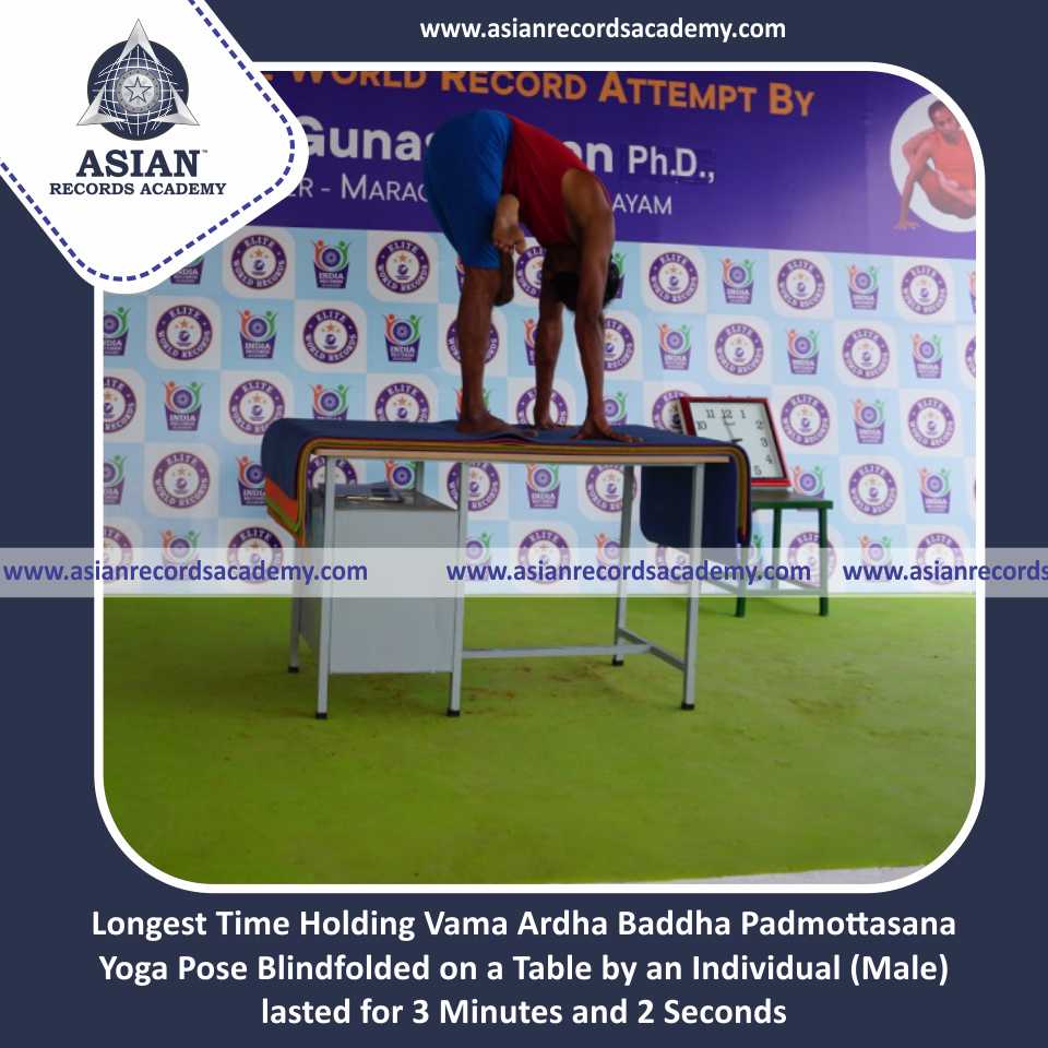 Longest Time Holding Vama Ardha Baddha Padmottasana Yoga Pose Blindfolded on a Table by an Individual (Male)