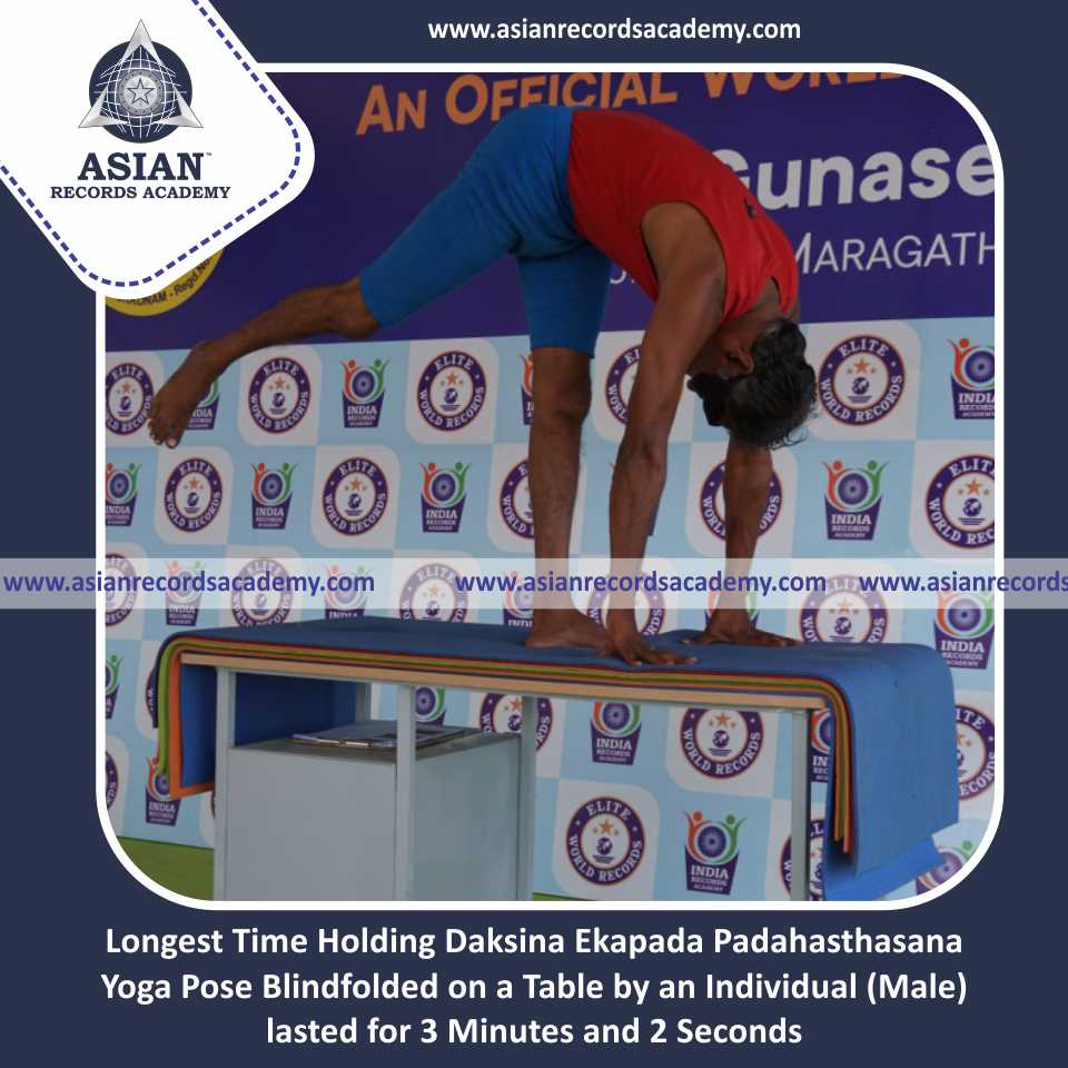 Longest Time Holding Daksina Ekapada Padahasthasana Yoga Pose Blindfolded on a Table by an Individual (Male)