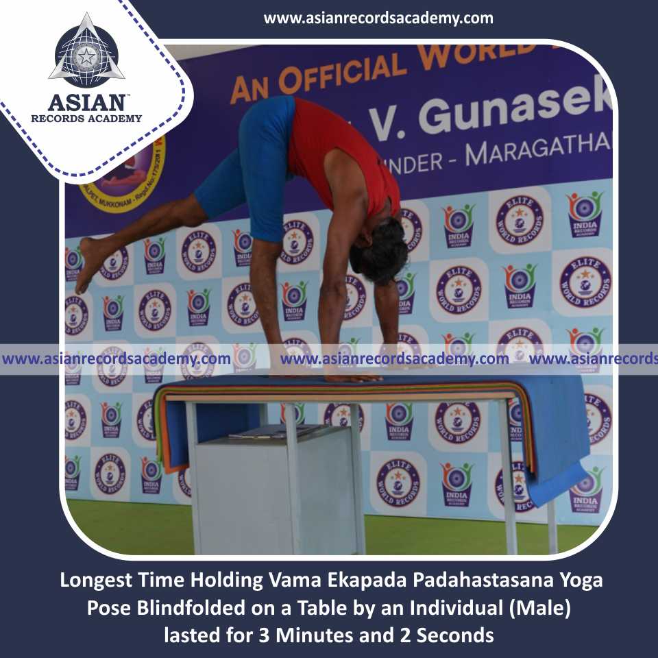 Longest Time Holding Vama Ekapada Padahastasana Yoga Pose Blindfolded on a Table by an Individual (Male)