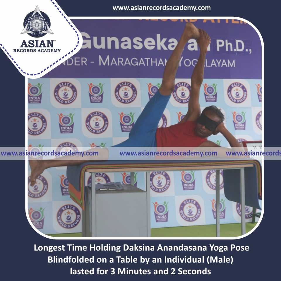 Longest Time Holding Daksina Anandasana Yoga Pose Blindfolded on a Table by an Individual (Male)