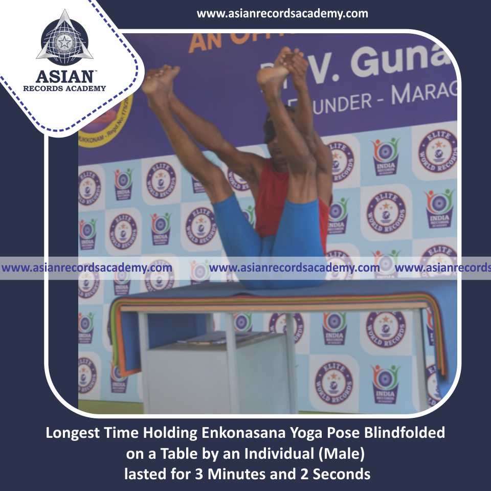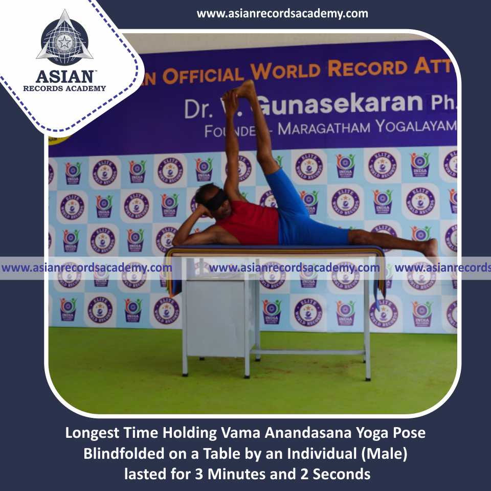 Longest Time Holding Vama Anandasana Yoga Pose Blindfolded on a Table by an Individual (Male)