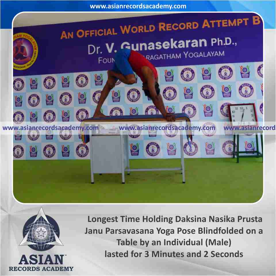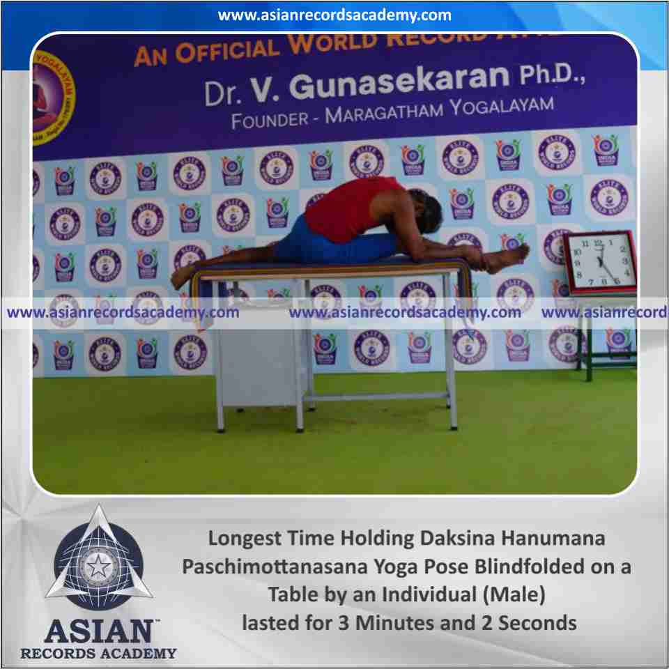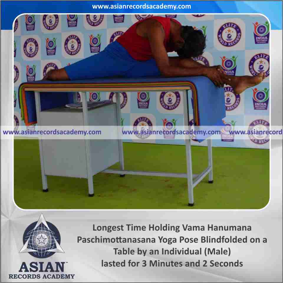 Longest Time Holding Vama Hanumana Paschimottanasana Yoga Pose Blindfolded on a Table by an Individual (Male)