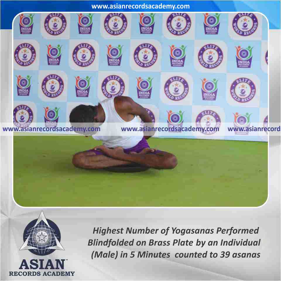Highest Number of Yogasanas Performed Blindfolded on a Brass Plate by an Individual (Male) in 5 Minutes