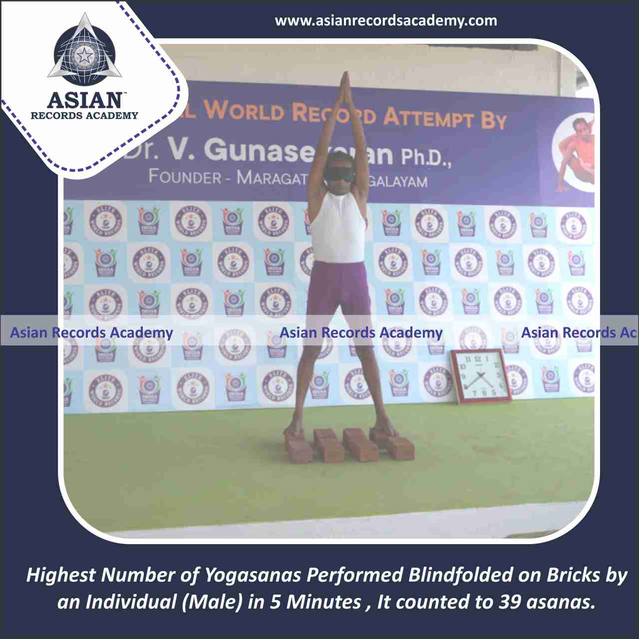 Highest Number of Yogasanas Performed Blindfolded on Bricks by an Individual (Male) in 5 Minutes