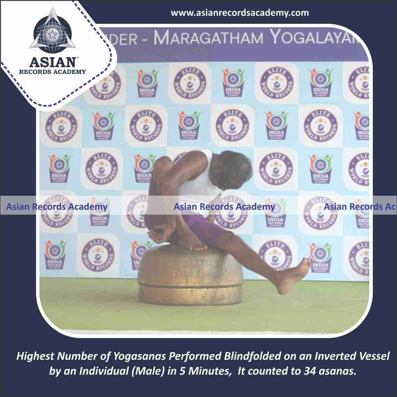 Highest Number of Yogasanas Performed Blindfolded on an Inverted Vessel by an Individual (Male) in 5 Minutes