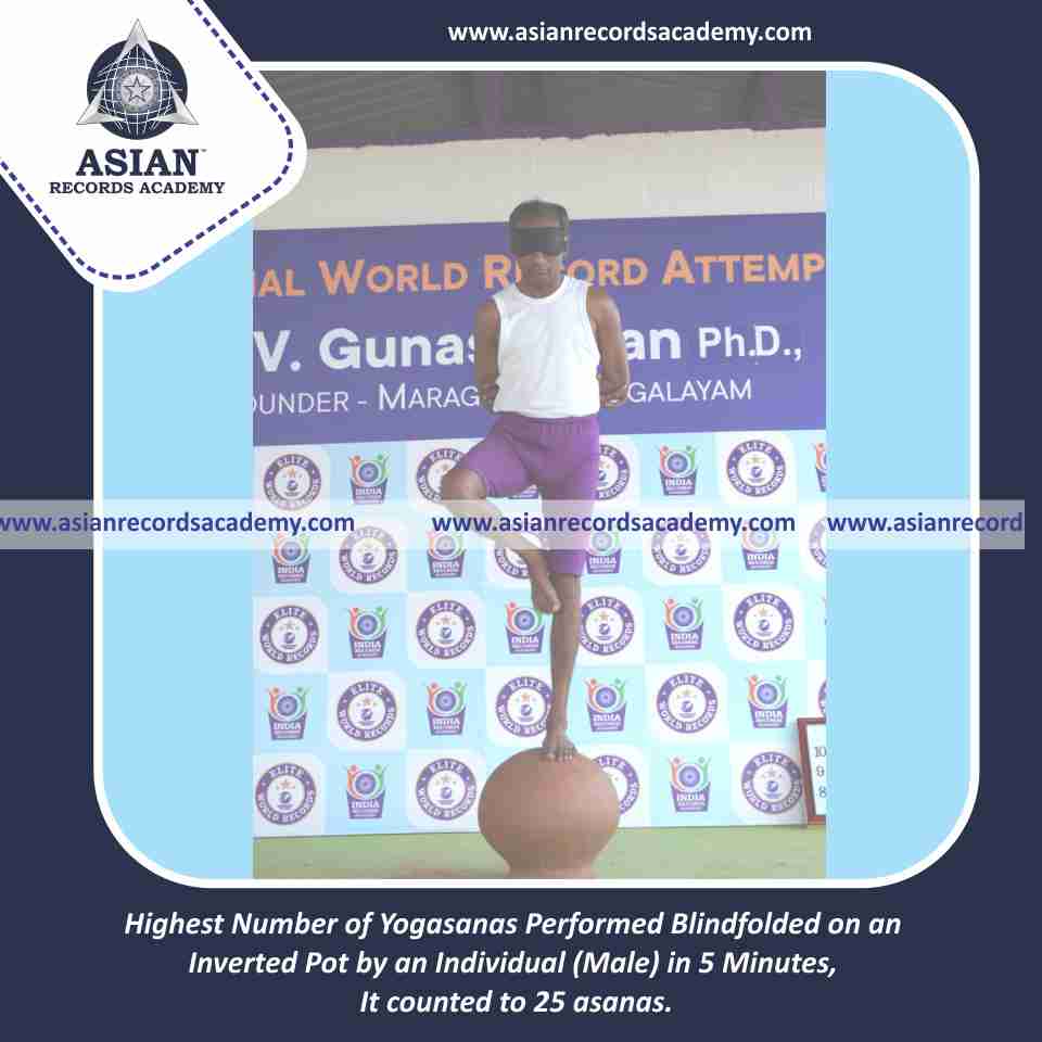 Highest Number of Yogasanas Performed Blindfolded on an Inverted Pot by an Individual (Male) in 5 Minutes