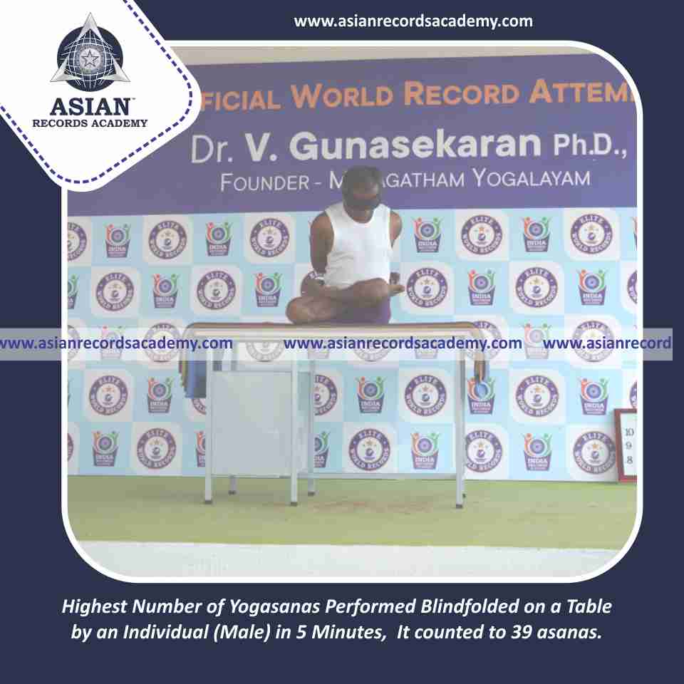 Highest Number of Yogasanas Performed Blindfolded on a Table by an Individual (Male) in 5 Minutes