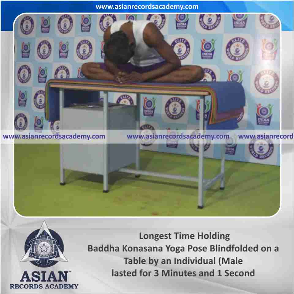 Longest Time Holding Baddha Konasana Yoga Pose Blindfolded on a Table by an Individual (Male)