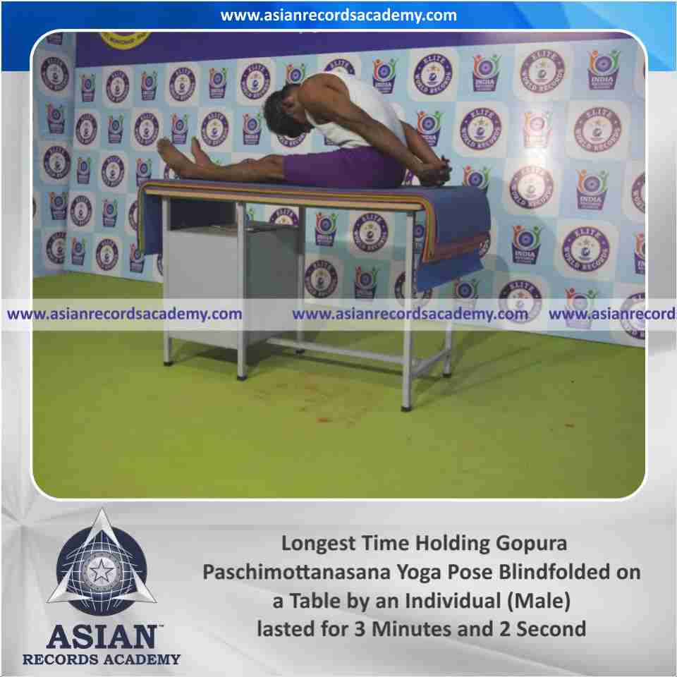 Longest Time Holding Gopura Paschimottanasana Yoga Pose Blindfolded on a Table by an Individual (Male)