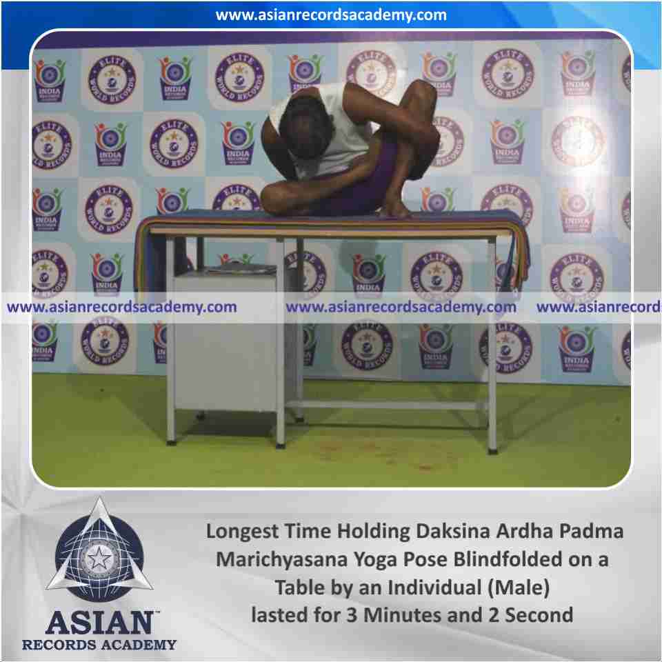 Longest Time Holding Daksina Ardha Padma Marichyasana Yoga Pose Blindfolded on a Table by an Individual (Male)